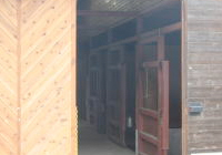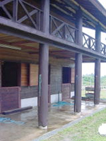きれいな水で有名な、山梨県の白州にあるログハウス。おもに、外乗ツアーなどの宿泊施設として使われています。厩舎と馬場が完備されています。 |