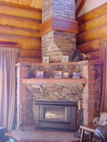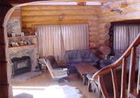 | ログハウスの中です。広いリビングに本格的な暖炉、皆さまでのんびりとしたひと時を・・・ |