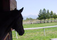 | 厩舎の外には、広い放牧場、馬もリフレッシュ! |