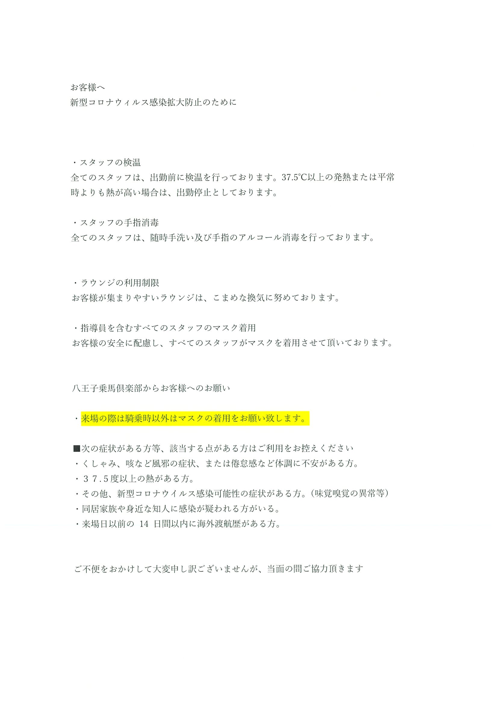 >新型コロナウィルス感染拡大防止のために