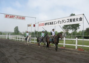 エンデュランスという競技をご存知でしょうか。この競技は乗馬のマラソンというべき競技で、大自然を楽しみながら長距離を走り貫くものです。外国ではかなりメジャーな競技ですが、近年日本でも人気が出てきました。八王子乗馬倶楽部では、楽しんで出場できるエンデュランス競技に積極的に取り組んでいます。これまでも北海道を始め、山梨県の小淵沢、軽井沢と参加し、優勝や入賞などをする事が出来ました。この新しい競技エンデュランスに挑戦してみませんか?